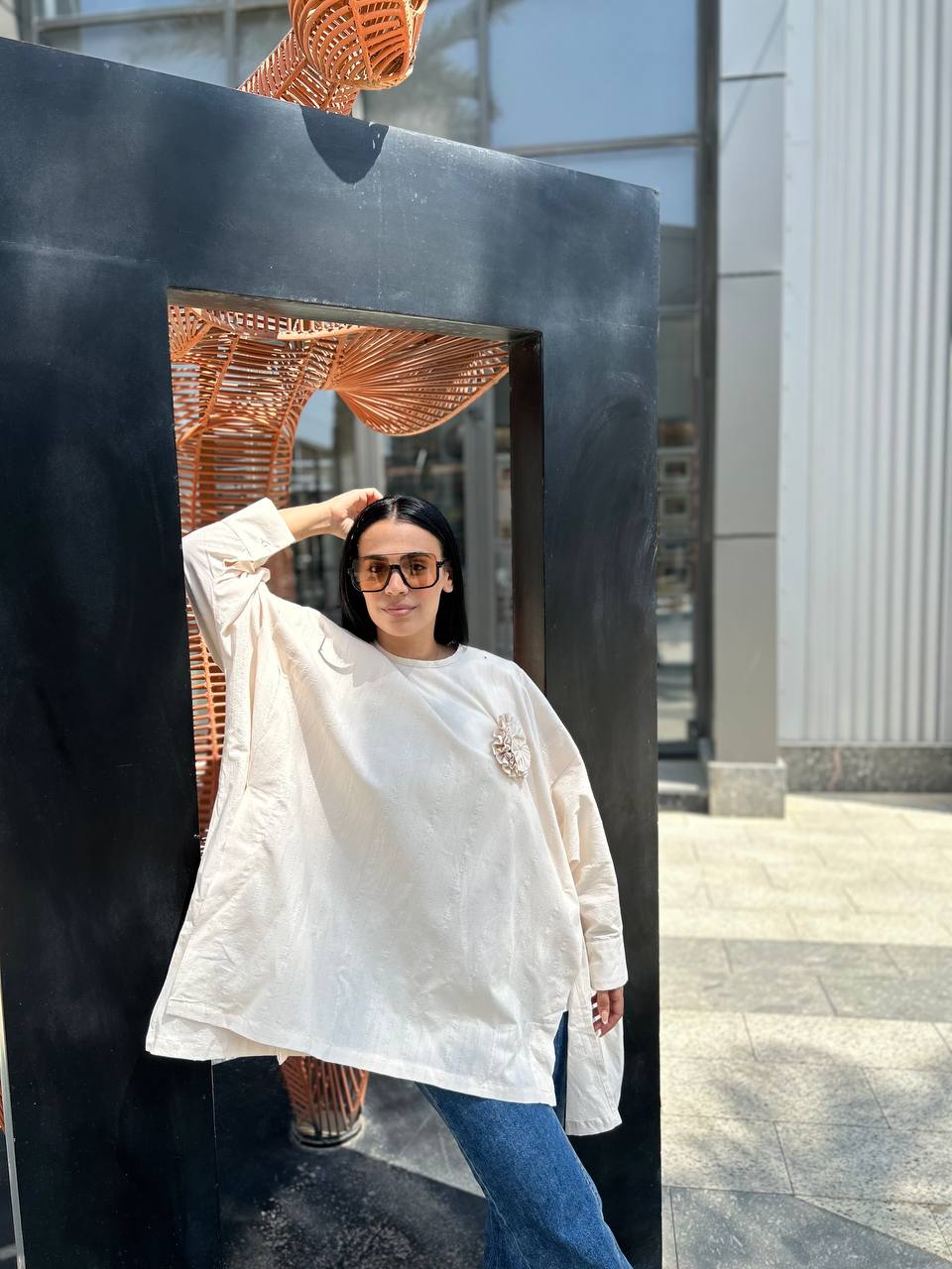 Expertly crafted from 100% cotton linen material, our Flower Blouse offers both style and comfort. The oversized design and modest fit make it the perfect addition to any wardrobe. Plus, the removable handmade flower adds a touch of elegance to this one-size-fits-all blouse.